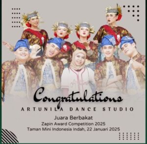 Jakarta – Kabar membanggakan kembali mengukir prestasi gemilang bagi dunia seni tari Lampung. Kelompok tari Artunila, yang merupakan representasi dari Program Studi Pendidikan Tari Universitas Lampung (Unila), berhasil meraih gelar Juara Berbakat dalam ajang Zapin Awards tingkat Asia Tenggara yang diselenggarakan di Taman Mini Indonesia Indah (TMII), Jakarta, pada 22 Januari 2025 lalu.